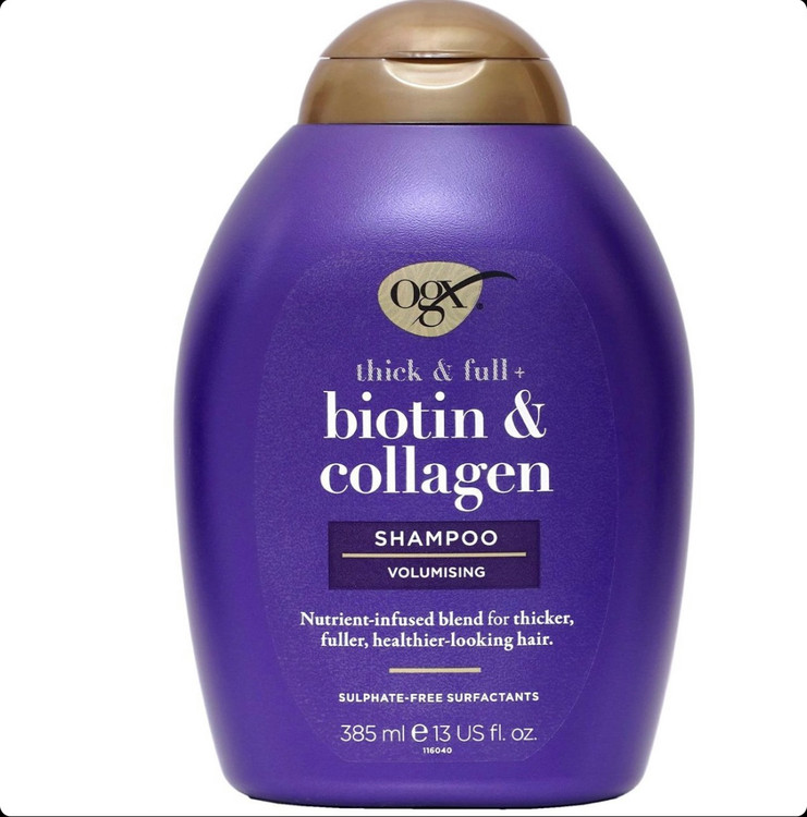 دریافت دو ماده مفید بیوتین و کلاژن در شامپو بدون سولفات OGX او جي ايکس مدل BIOTIN & COLLAGEN میتواند به شمادر استحکام بخشیدن و تقویت کردن مو کمک کند.چرا که بیوتین (ویتامین B7) در شامپو او جی ایکس با تغذیه فولیکول مو باعث استحکام ساختار مو میشود و شکننده بودن مو را رفع میکند.