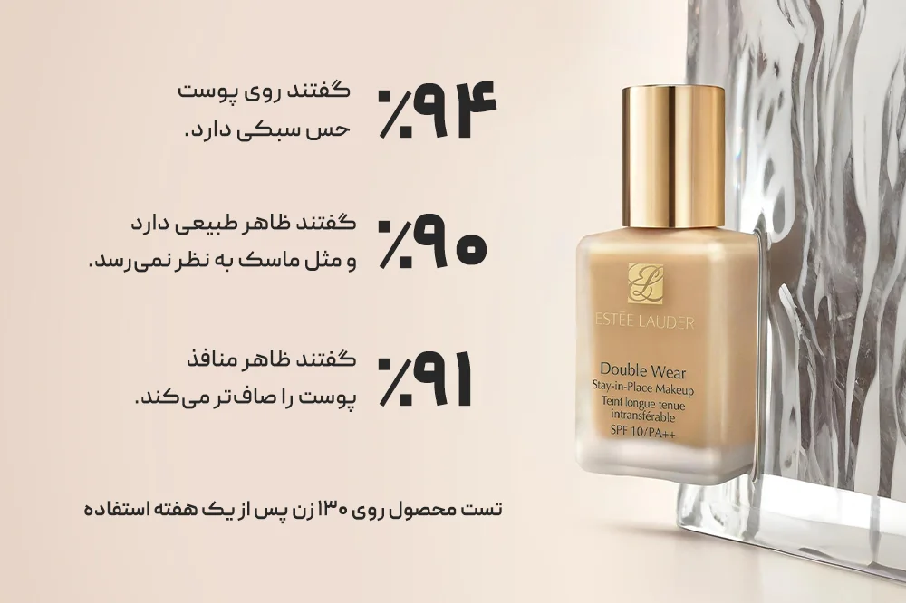 همچنین، هیچ گونه سنگینی یا خشک شدگی روی پوست ایجاد نمی کند. این محصول به ویژه برای کسانی که نیاز به پوشش کامل دارند، مناسب است. با این حال، به دلیل پوشش دهی بالای آن، ممکن است برای افرادی که به دنبال جلوه طبیعی و سبک تر هستند مناسب نباشد. در مجموع، Estee Lauder Double Wear یک انتخاب عالی برای ماندگاری طولانی و پوشش بی نقص است.